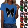 (Asian Size) Women Bow Watercolor Trend 90s Style Print Tee Top Clothing Casual Short Sleeve Lady Fashion Tshirt Female Graphic T-shirt