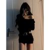 Mini abito torta nera donna design vintage colletto quadrato manica lunga abiti corti moda coreana Kpop autunno
