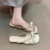 Cool slippers women's summer wear new bow rhinestone belt sweet square head word sandals