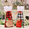 Festive Red Green Checkered Snowman Wine Bottle Cover Perfect For Decor Christmas