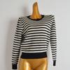 French style New Contrast Color Stripe U Collar Open Collarbone Pullover Knit Women Autumn and Winter Loose Bottoming Shirt Long sleeve Top