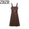 Counter Same Zbzr Autumn New Women clothes Western Style Versitile Fashion Belt Midi Dress 4387231