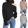 Autumn and Winter Women's Knitwear Solid Colour Lapel Leakage Shoulder Sexy Knitted Sweater