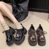 10Cm small inner height increase high heel thick sole lace-up small leather shoes women's new single shoes