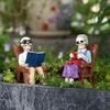 Enhance your Halloween decor with this unique skeleton statue. Perfect for Halloween celebrations, this Gothic-style statue features a skeleton reading a book, adding a touch of literary atmosphere to the horror theme. Crafted from high-quality synthetic resin, this durable statue is rich in detail and excellent workmanship.