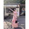 Early summer new pink suspender floral dress casual women's summer French temperament premium hip-wrapped dress