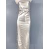 Foreign Trade Order Summer New Sexy Gyaru Tube Top Metal Sense Silver Pleat Senior Women Mid-Length Dress