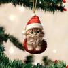 Christmas Pendant 2D Acrylic Cat Wearing Xmas Hat Charm Car Hanging Ornament Festive Atmosphere
