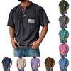 Men's Summer Independence Day Pattern Round Neck Short Sleeve T-Shirt Neck Men's All- Casual Button Shirt
