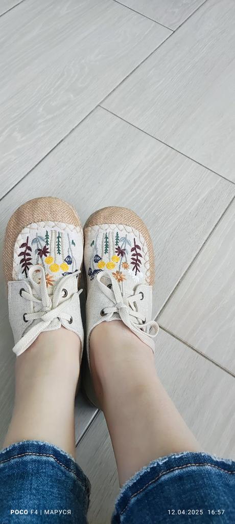 Johnature Moteriški batai siuvinėti Retro suvarstomi apvalūs medvilniniai lininiai rankų darbo glaustai patogūs moteriški batai