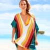 Ny Kontrastfarge Strikk Bikini Cover Up Sexy Knit Hollow Front og Bak V-hals Frynser Side Splitt Minikjole Dame Strand Badetøy Cover Up