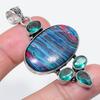 Natural Fluorite, Diopside Gemstone 925 Sterling Silver Pendant 2.25" Z3C87