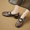 fashion Mesh Mary Jane Single Shoe Women's Summer New Round Head Line with Hollow Mesh High-heeled Sandals