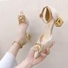 Fashion Ankle Strap Crystal Sandals for Women Pointed Toe High Heels Sandalias De Mujer Shiny Rhinestones Square Heeled Pumps