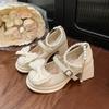 Fashion Women's High Heels Ma Lizhen Shoes Spring New Bow Pearl Small Leather Shoes Platform Bottom Loafers