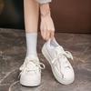 CRLAYDK Fashion Women's White Platform Sneakers PU Leather Walking Cute Bow Lace Up Shoes Knot Pearl Detachable Casual Tennis