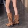 Fashion Goth Woman Shoes Western Cowboy Boots 2025 New Designer Chain Chunky Heels Pointed Toe Metal Buckle Trending Mid-calf Boots