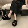 Slippers Women Fluffy Flip Flops Furry Slides Slipper Ladies Shoes Crystal Hollow Flat Faux Fur Sandals Decor Platform Footwear