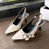 New Summer Women Dress Shoes Pointed Toe Sandals Buckle Slingbacks Pumps Back Strap Mid Heels Patent Leather Shoe Zapatos Mujer