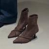 2024 Vinter Nytt Merke Kvinner Ankelstøvletter Mote Tynn Lav Hæl Damer Elegant Korte Støvletter Rund Tå Utendørs Kjole Pumps