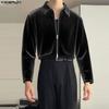 INCERUN Men Mockneck Long Sleeve Zipper Up Suede Jackets Motorcycle Coats