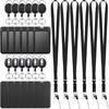 Set of 12 Clear Plastic Horizontal Name Tags Badge ID Card Holders and 12Pcs Black Lanyards with Clip lanyards for id Badges