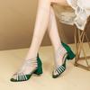 2025 Ladies Shoes Cover Heel Peep Toe Women's Sandals Fashion Dress Sandals Women Narrow Band Back Zip Chunky Heels Shoes Female