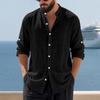 Men's Long-Sleeve Linen Henley Shirt - Casual, Breathable, Versatile for Commuting or Vacation