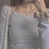 Dongdaemun's Highly Recommended Sexy One-Shoulder Striped Slim-Fit Long-Sleeved T-Shirt