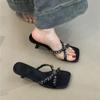 Moteselskap damesko sommer dameslippers nye bankettmiddagssandaler med fast tå stiletthæl høye hæler sandaler