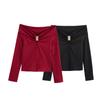 Fashion Large Size Long Sleeve New Oblique Neck T-Shirt Bottom Slim Top Women