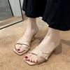 French retro evening wind fish mouth cool slippers wear mid-heel half drag summer cat heel sandals