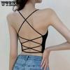Strappy Cross Hollow Out Back Sports Bandeau with Chest Pads for Women