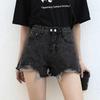 Rippede Denimshorts Tide Dame Sommer Høyt liv Løse Tynne Vide ben Råkant Shorts
