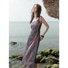 French Elegant Color Block Pleated Off-Shoulder Slip Dress for Women - 2025 Vacation Style