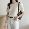 2025 Spring Elegant Women's U-neck Short-Sleeve Wool Knit Sweater - Soft, Loose, Slimming & Versatile Fashion Staple