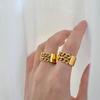 European Minimalist Ferris Wheel Titanium Steel Ring with PVD Electroplated 18K Gold Finish – Unisex, In Stock