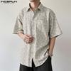 INCERUN Oversized Men Lapel Neck Short Sleeve Texture Buttons Up Casual Shirts