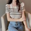 Korean Striped Knitted Pullovers Female Clothing Spliced Short Sleeve Summer Commute Casual Round Neck All-match Loose T-shirt