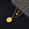 European and American Fashion Retro Double Layer Twin Titanium Steel Necklace Cross Awn Star Round Brand Stainless Steel Necklace