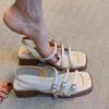 Sheepskin version~ Leather square head cross strap Roman shoes women's summer wear literary and retro woven thick heel sandals
