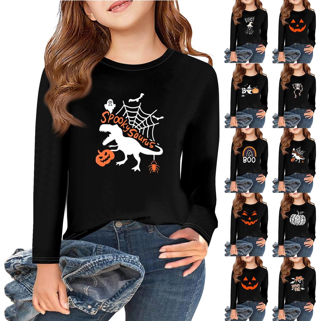 Jenter Langermet Halloween Dag T-skjorter Barn Høst Topper Rund hals Basic T-skjorter 2-11Å