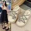 Sheepskin version~ Small thick-soled sandals for women's summer wear 2025 new summer fashion high-end rhinestone sandals