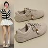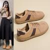 Women's Casual Sports Shoes Fall New Round Head Suede Splicing Front Lace-up Comfortable Flat Shoes