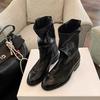 Cowhide retro premium wide leather western boots thick heel medium tube knight short boots women's autumn and winter Martin boots