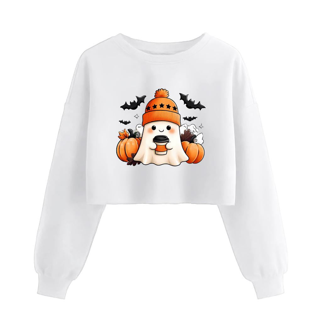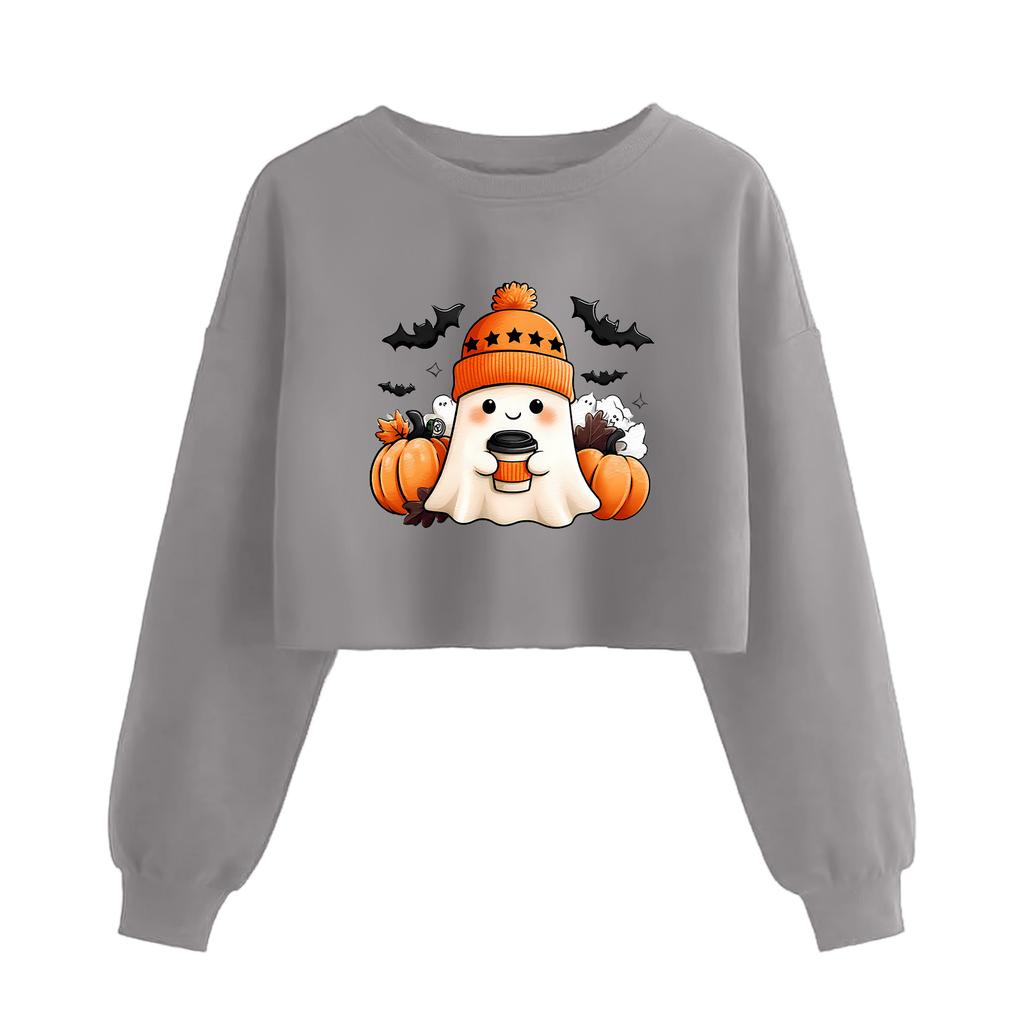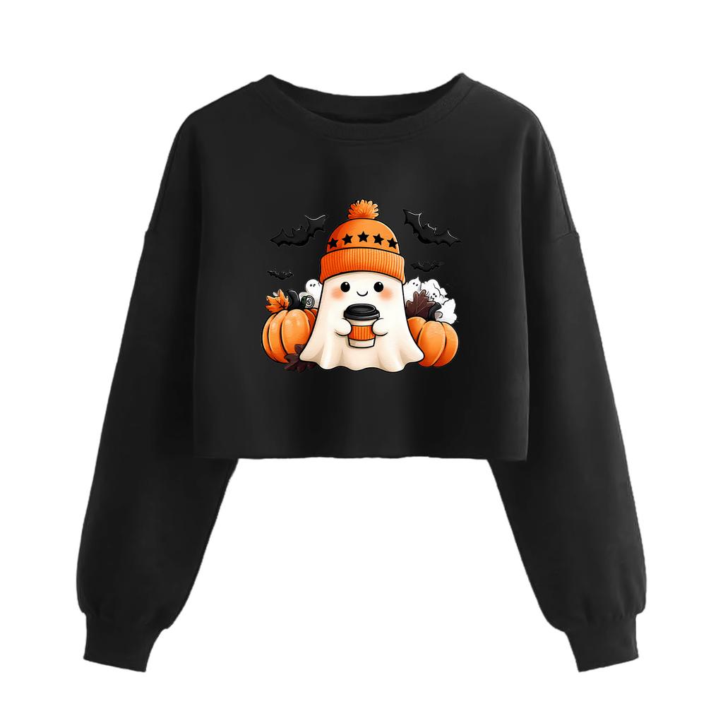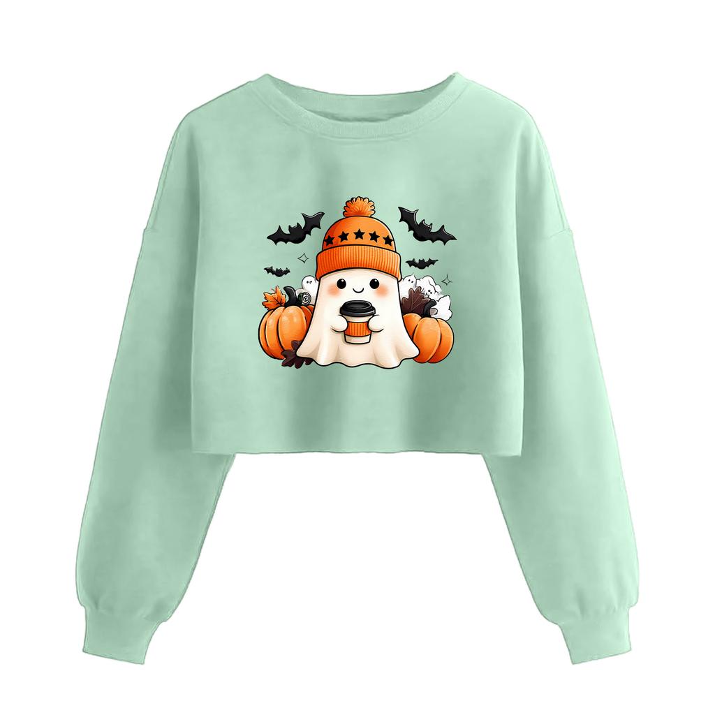 Women's Fashion Halloween Printed Navel-Exposed Long Sleeve Pullover Sweatshirt
