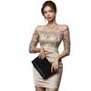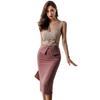 A gorgeous midi-length dress (cabaret dress) layered with different materials. This feminine all-lace dress in a soft baby pink hue. The eyelash lace and tulle lace create an exquisite gradation, while the sheerness of the chest and legs gives a subtly sexy impression. This dress is sure to lighten the hearts of both the wearer and the viewer for any glamorous occasion.