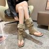 Square toe cool boots women's summer boots but knee high thin boots women's heel boots pleated piled boots