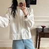 Solid Color Embroidered Women's Shirt Fungus Edge Stand Collar Long Sleeved Shirts French Spring Autumn Period Woman Top