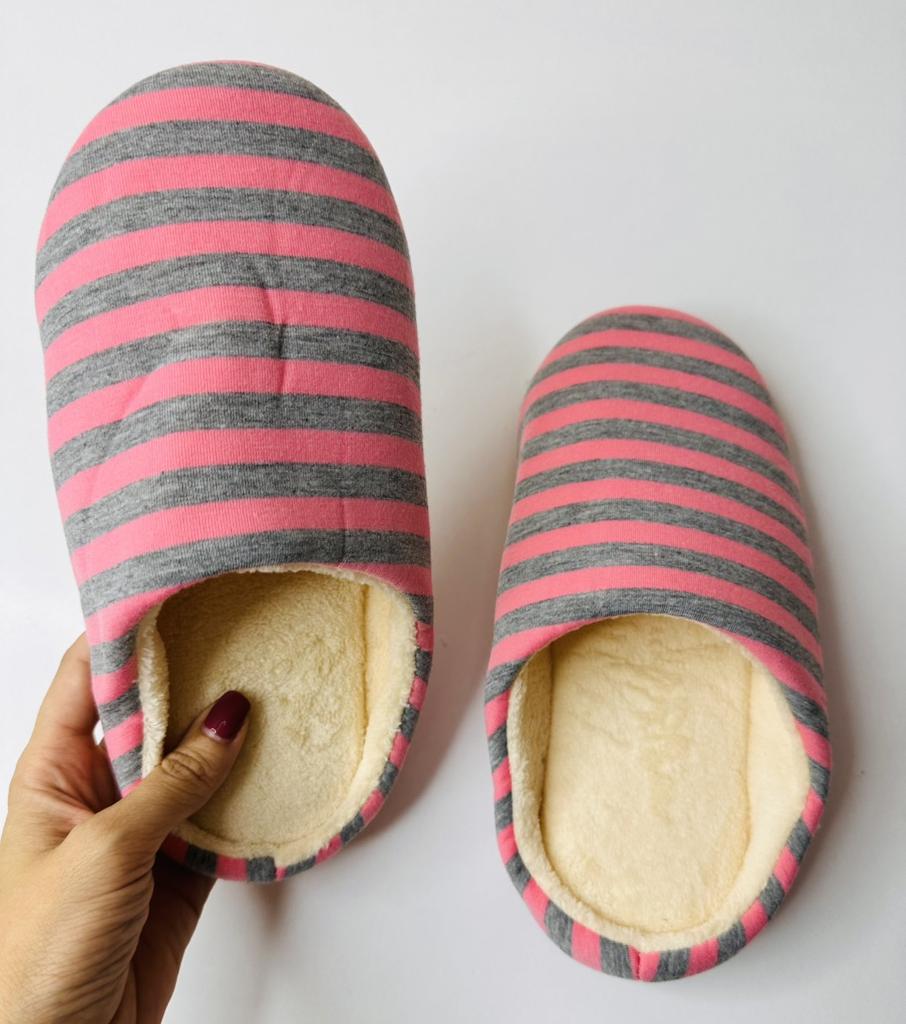 Winter Plush Men Slippers Plus Size Striped Soft-soled Men's and Women's Large Size Cotton Slippers